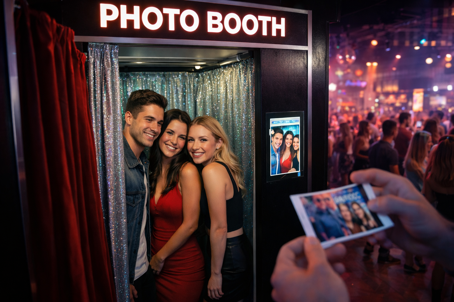 AI beauty enhancements, filters, and real‑time retouching are huge this year, giving guests premium, stylised content instantly. AI-driven booths blend nightlife lighting with smart processing for incredible results — no editing needed. [laglambooth.com]